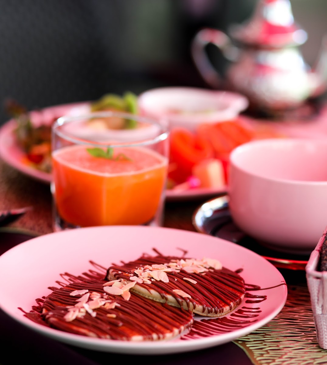 As you step inside, you'll be greeted by a cozy atmosphere that's both inviting and vibrant. The decor combines a modern aesthetic with touches of Moroccan warmth, making it the perfect backdrop for a leisurely breakfast, a quick coffee break, or a festive celebration. The cafe exudes a sense of comfort that will make you want to linger just a bit longer.